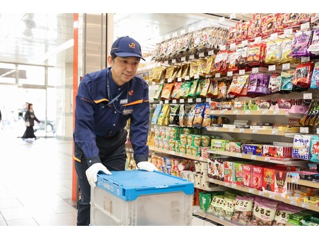 駅構内の店舗へ、お土産や飲料、雑誌やお弁当を納品